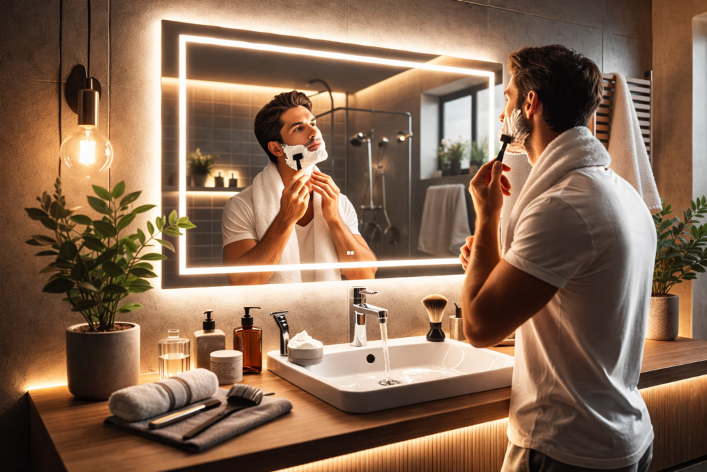 A tökéletes borotválkozás titka: Hogyan válasszuk ki a megfelelő fürdőszobai tükör világítást?